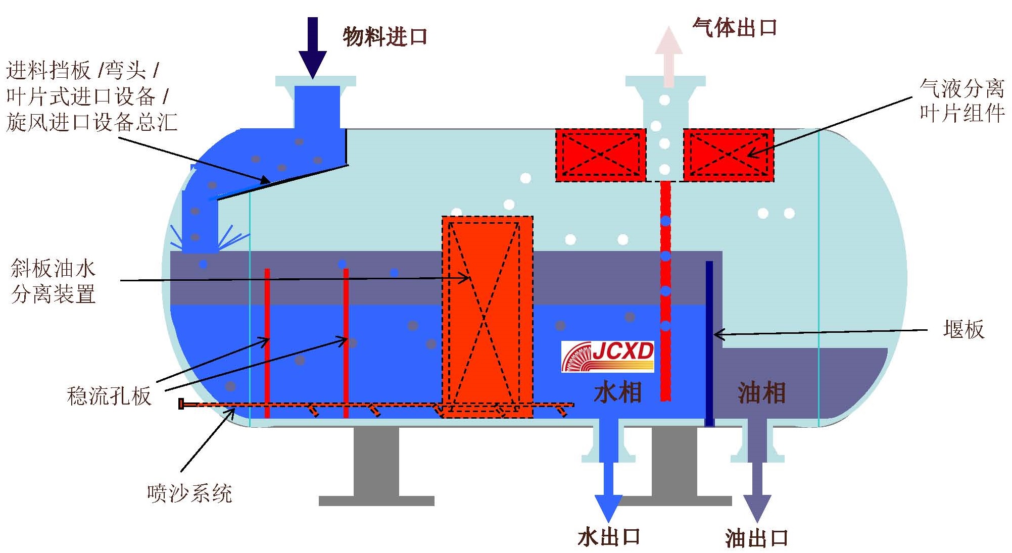 JCXD系列三相分離器具有分離效果好、處理量大、自動化水平高、適應能力強等特點。